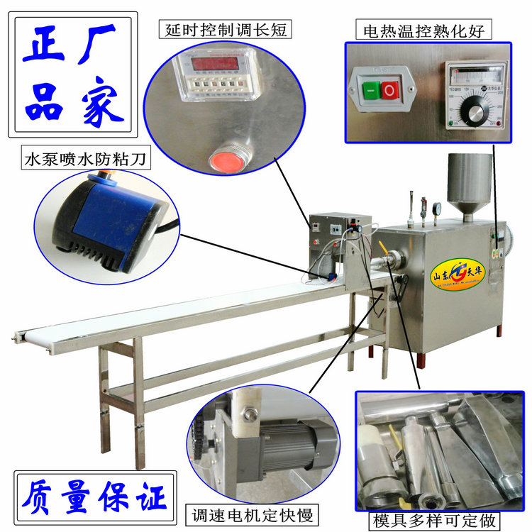 成套年糕機為機電一體化設(shè)計,由年糕熟化成型機和皮帶輸送數(shù)控切斷機組成,操作簡單,生產(chǎn)效率高,它采用電熱溫控水浴煮漿新工藝,以米漿為原料加工年糕,自動熟化,自動揉壓勻質(zhì),自動成型,生產(chǎn)的年糕熟化徹底,外表光滑亮澤,口感筋道細膩,大小均勻,產(chǎn)品形狀可根據(jù)用戶要求,定制各種模具。